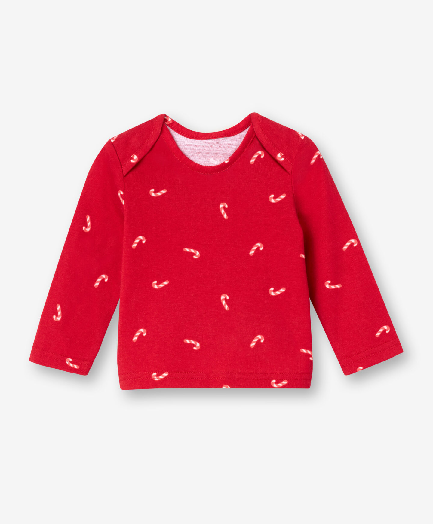 Бебешкият комплект за момиче се състои от пижама и топъл халат. Ризата и панталонът с дълги ръкави са украсени с шарка на захарна пръчица, а халатът има изображение на елен на качулката, включително сладки 3D рози! Този комплект е и чудесна идея за коледен подарък.